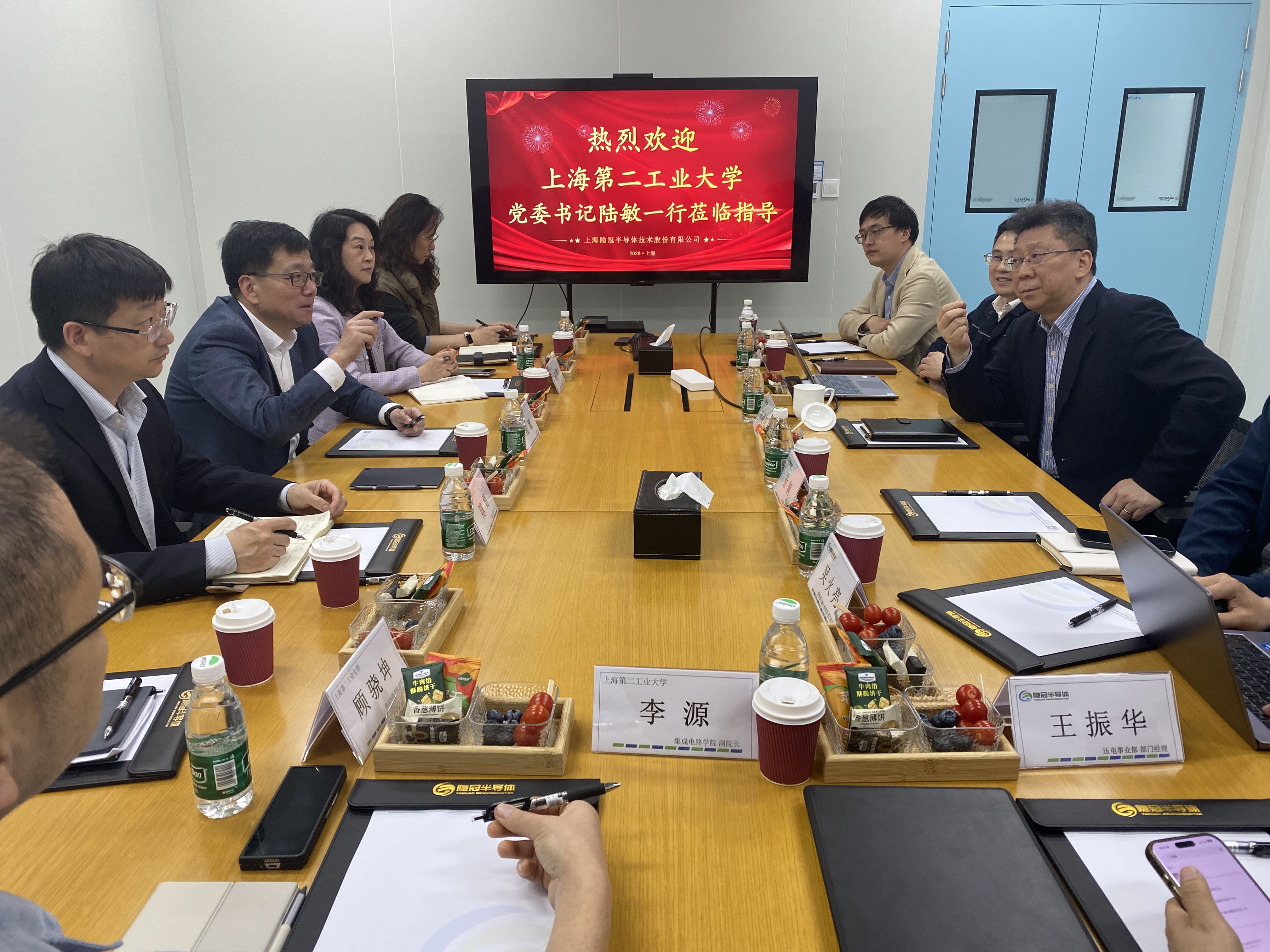 4月2日下午,校党委书记陆敏带队赴隐冠半导体技术股份有限公司走访调研,隐冠半导体首席科学家、复旦大学微电子学院杨晓峰教授,董事长兼总经理吴立伟接待了我校一行。